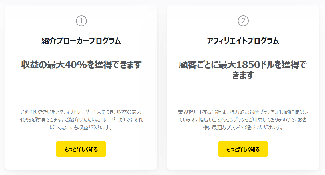 Exnessではアフィリエイトの仕組みが2つあり、通常のIB報酬と言われるトレードごとに報酬を得るタイプ(紹介ブローカー)と、1人紹介するたびに、初回入金額に応じて報酬を得るタイプ(アフィリエイトプログラム)があります。